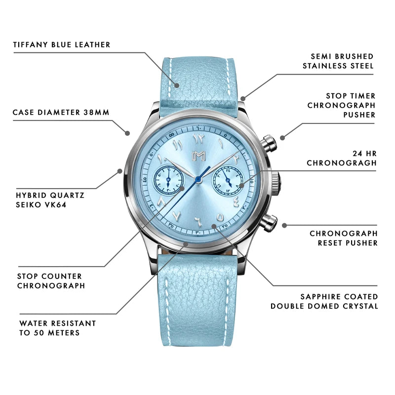 بتصميم يمزج بين روح الماضي ووظائف الحاضر، تُعد هذه الساعة مثالية للعمل، والسفر، والاستخدام اليومي. تضيف الأرقام العربية لمسة ثقافية راقية، فتجعلها قطعة بارزة تنسجم بسلاسة مع إطلالتك.