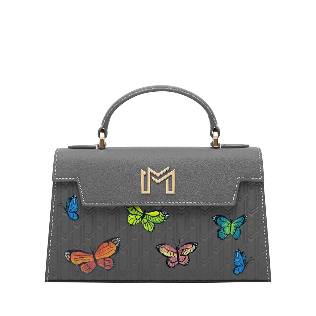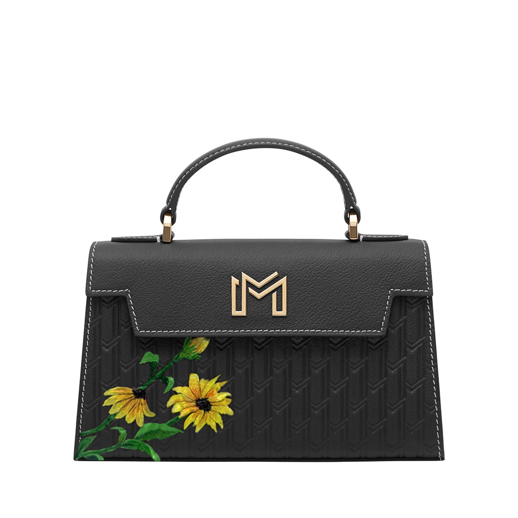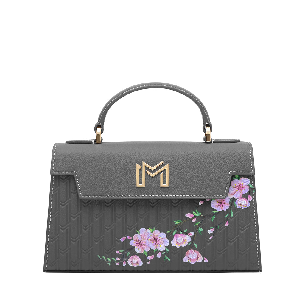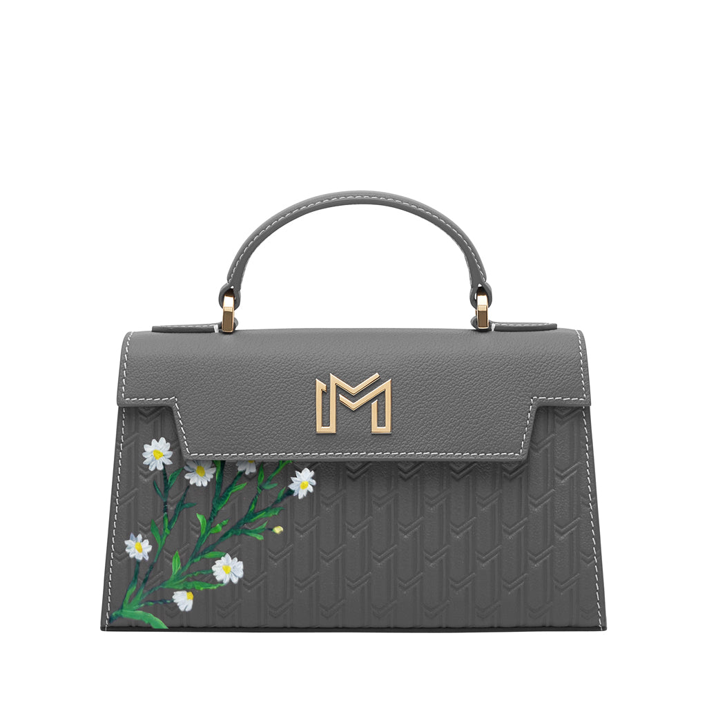 Meet Hessa, a true testament of elegance in compact form. Made from genuine camel leather beautifully decorated with gold toned hardware and embossed with the signature M pattern. Chic and convenient with a magnetic flap closure with a stunning grained texture and lined with microfiber suede. Seamlessly transition your look from a top handle carry to a crossbody with its removable strap.