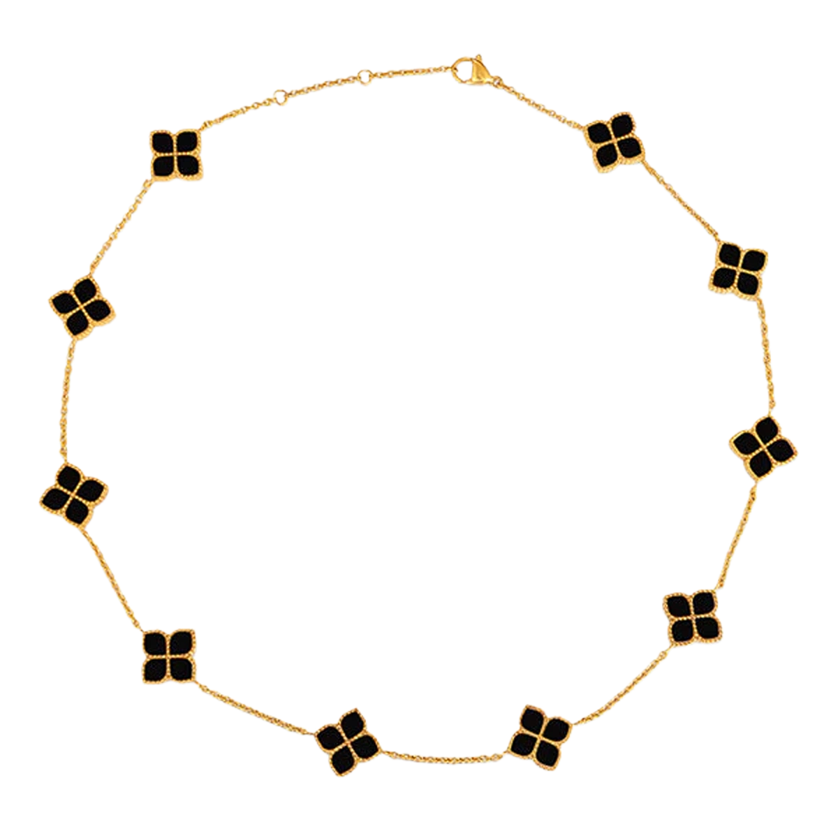 Introducing the perfect choker necklace adorned with ten flowers, designed with a border of exquisite beads.