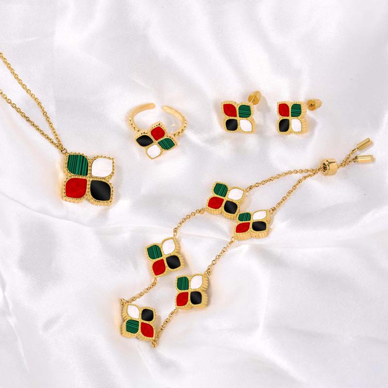 بوزن فائق الخفة وتصميم مريح، يمنحكِ طقم الجوري إحساسًا سلسًا على بشرتكِ. صُنع من مواد لطيفة ومضادة للحساسية، مما يجعله الإختيار المثالي لأناقة تدوم يوميًا.