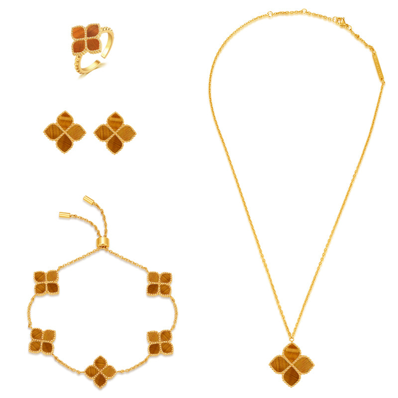 Our jewellery is made with high-quality materials plated with gold, silver, or rhodium, and adorned with premium crystals or stones.