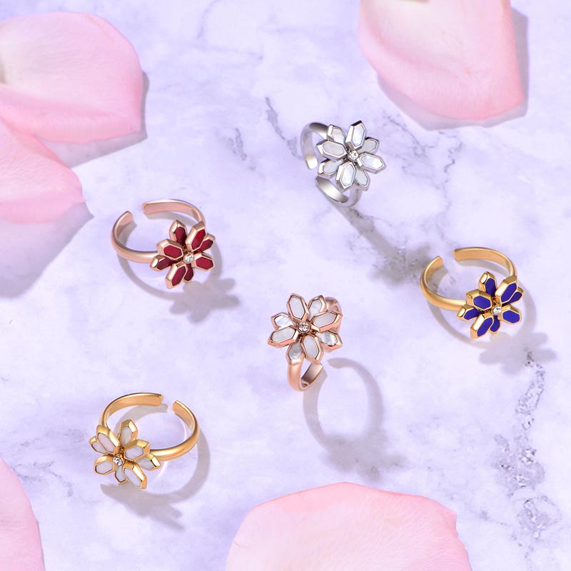 تتميز ببتلات هندسية متلألئة بألماس لامع ومرصعة بالأحجار الطبيعية التي تضيف لمسة فريدة إلى مظهرك اليومي.