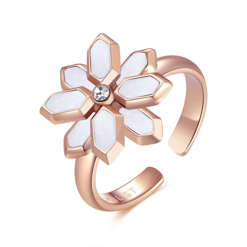 تتميز ببتلات هندسية متلألئة بألماس لامع ومرصعة بالأحجار الطبيعية التي تضيف لمسة فريدة إلى مظهرك اليومي.