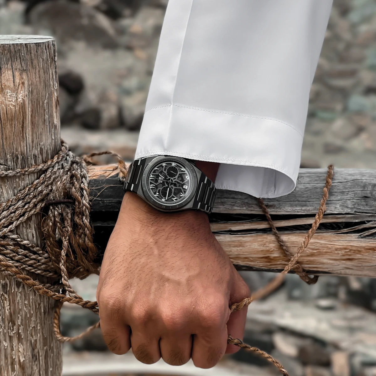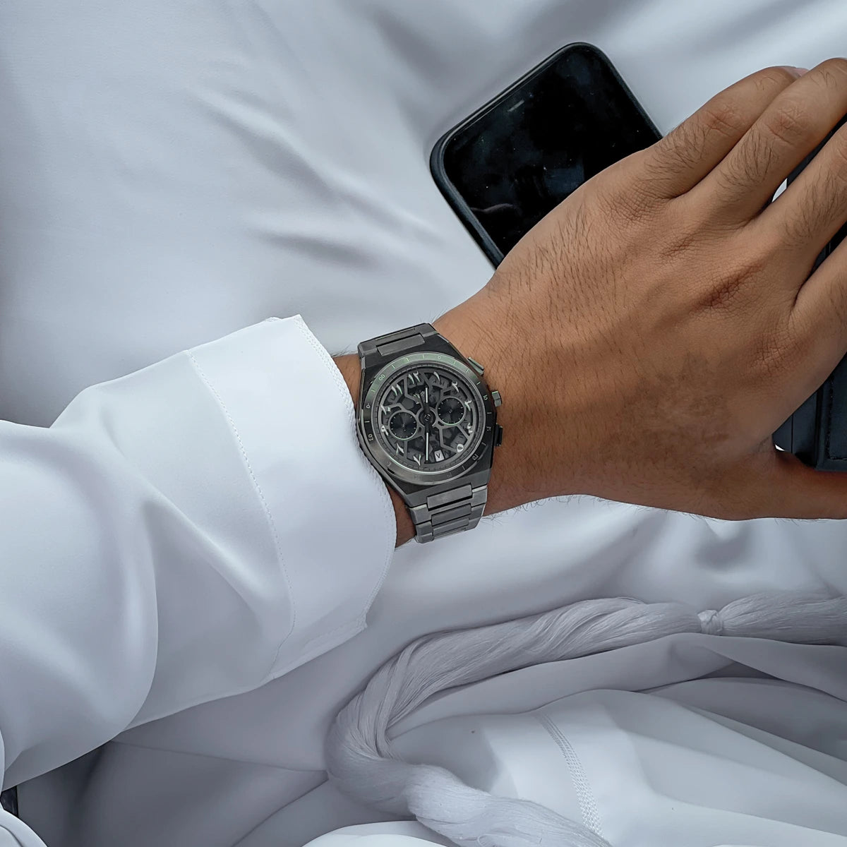 Our watches are crafted from premium stainless steel with sapphire crystal glass for scratch resistance and durability.
