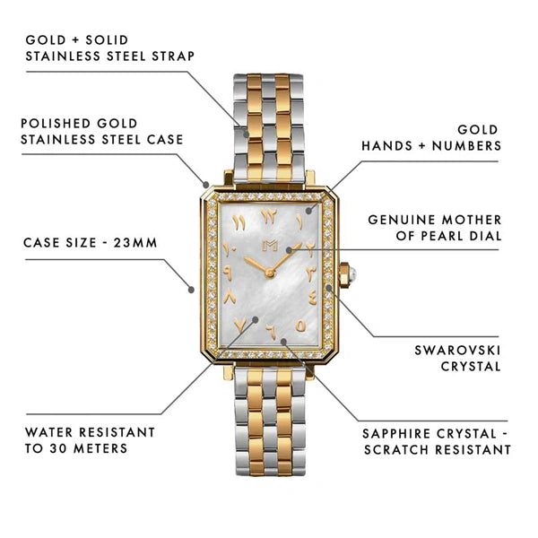 Inspired by Emirati heritage architecture, this watch takes the shape of the Barajeel wind tower, a symbol of tradition and innovation. Its rectangular window design creates a sleek and timeless silhouette, paying tribute to the artistry of the past while embracing a modern edge.