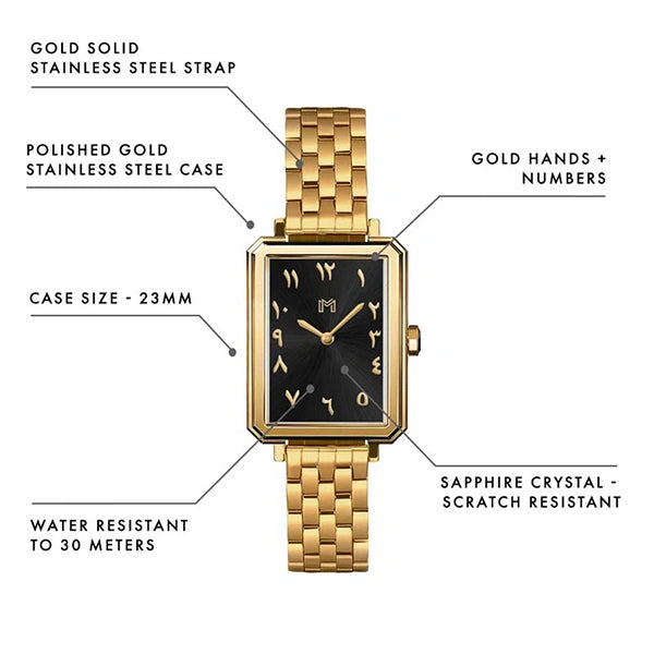 Inspired by Emirati heritage architecture, this watch takes the shape of the Barajeel wind tower, a symbol of tradition and innovation. Its rectangular window design creates a sleek and timeless silhouette, paying tribute to the artistry of the past while embracing a modern edge.