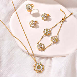 Feel like a princess with our new collection. The Ameera collection is a luxurious new addition to our jewellery line, fusing our joory flower with modern shapes and edges. The perfect accessory for the everyday look, and makes an exquisite gift.