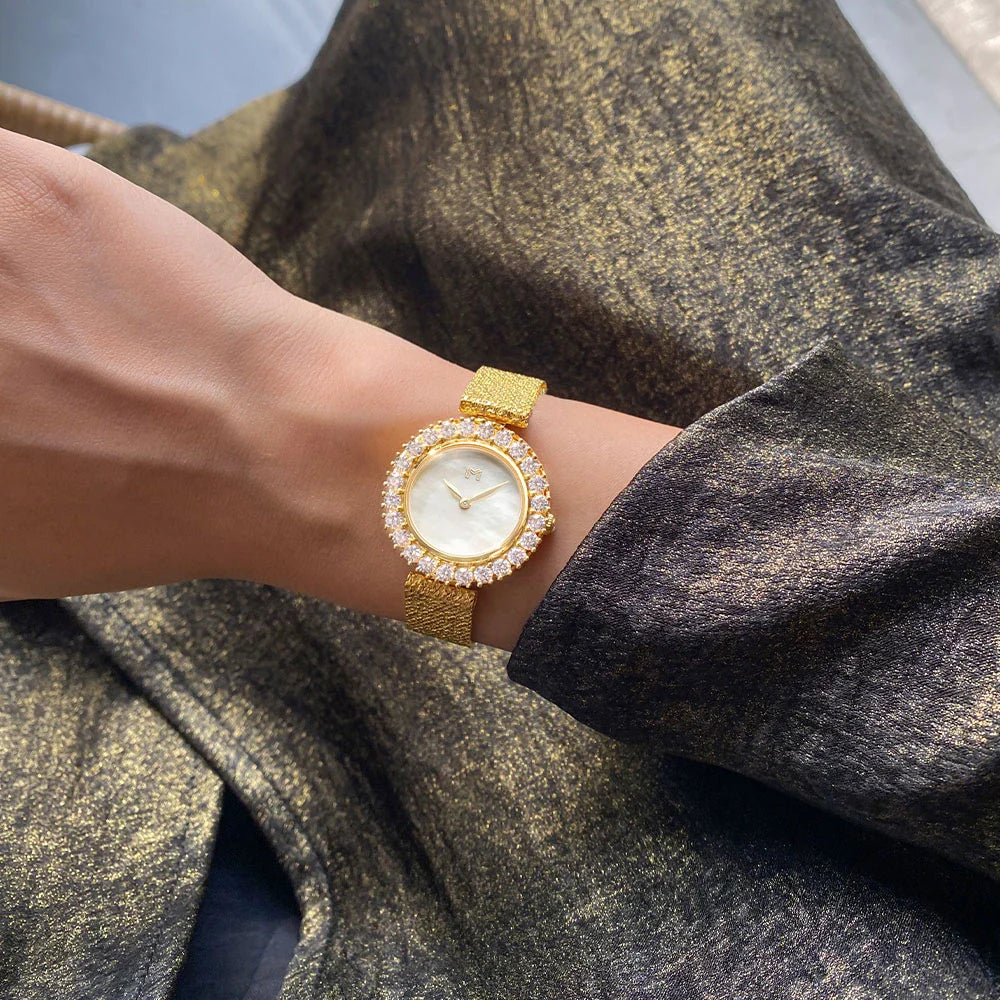This lightweight watch features elegance, comfort, and a touch of sparkle, making it perfect for special occasions.
