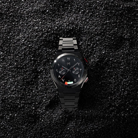 Celebrating the 50th UAE National Day, we have released a limited edition watch of 300 watches to show love for our country. Inspired by Vintage Arabic Numerals of 1970s, with a sleek brushed design. It features a 42MM Arabic bezel and date. This model is made with luminous hands & numbers and has a unique serial number.