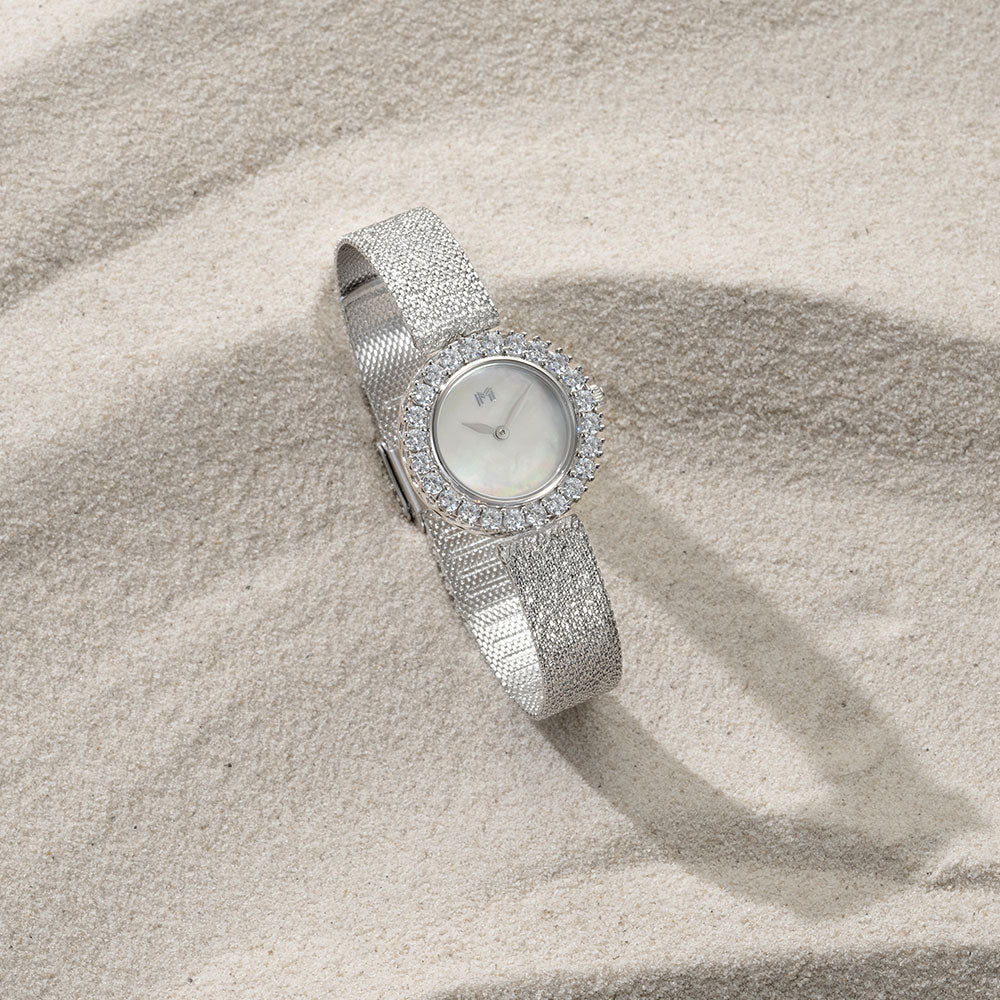 Unveiling the epitome of luxury with the Charming Diamond Watch. Featuring an exquisite round shape encased in brilliant crystals and an adjustable shiny mesh strap. A tribute to elegance beyond measure and makes the most wonderful gift.