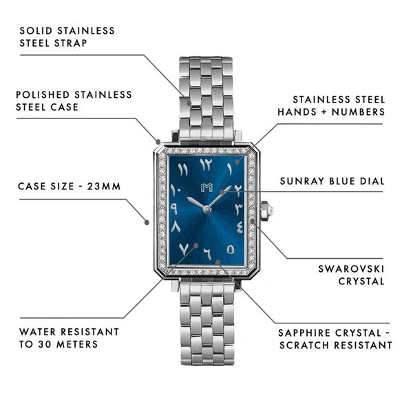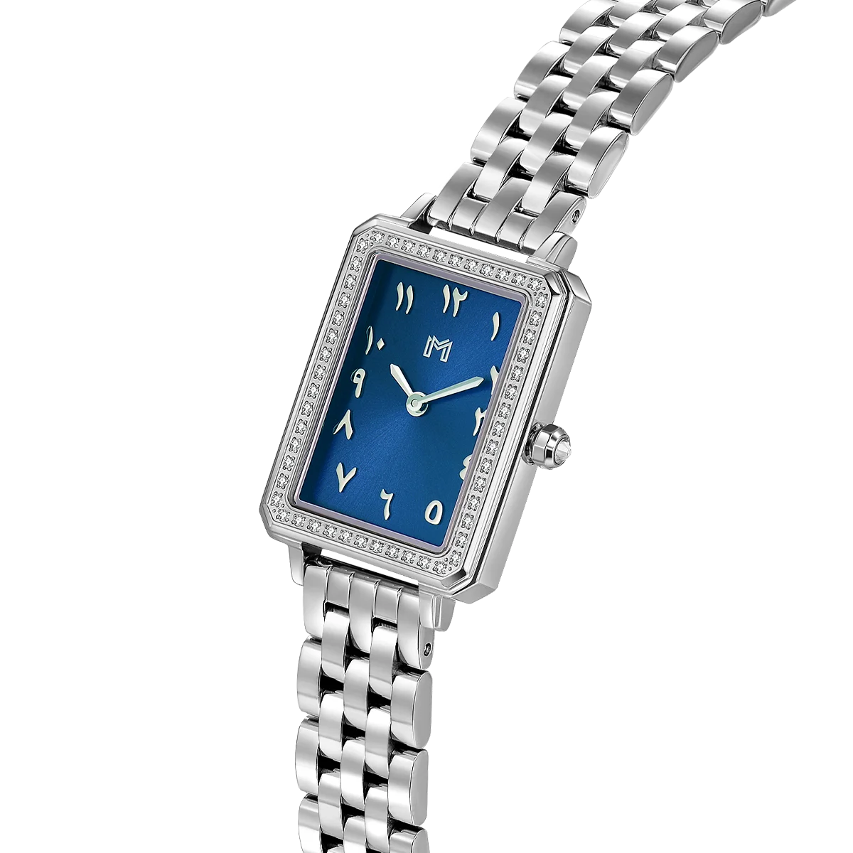 Inspired by Emirati heritage architecture, this watch takes the shape of the Barajeel wind tower, a symbol of tradition and innovation. Its rectangular window design creates a sleek and timeless silhouette, paying tribute to the artistry of the past while embracing a modern edge.