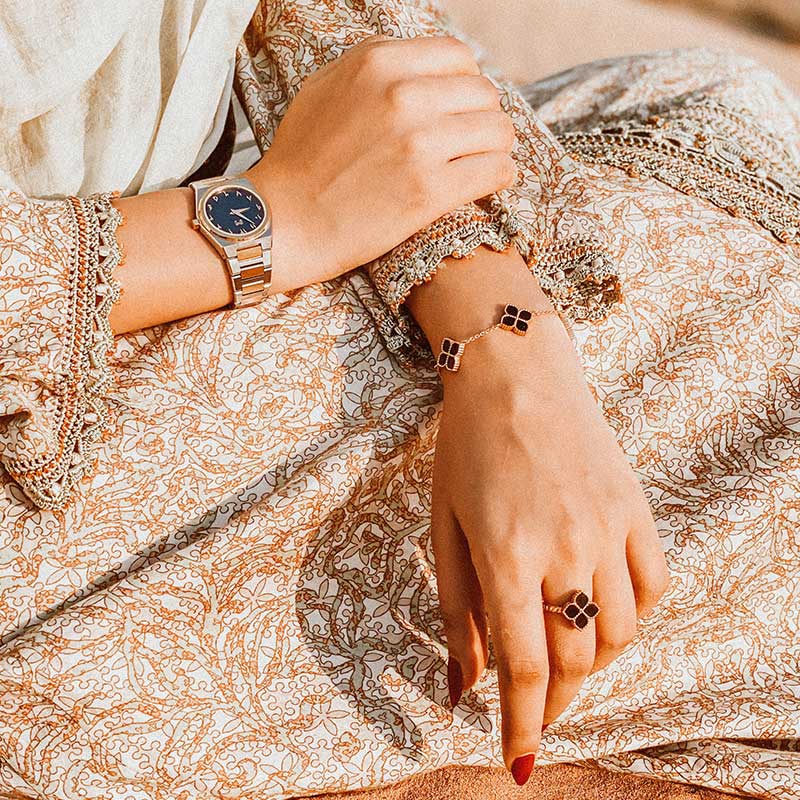 The Joory Collection is a rose-inspired collection with bead-framed florals and feminine details - designed for timeless, everyday elegance.