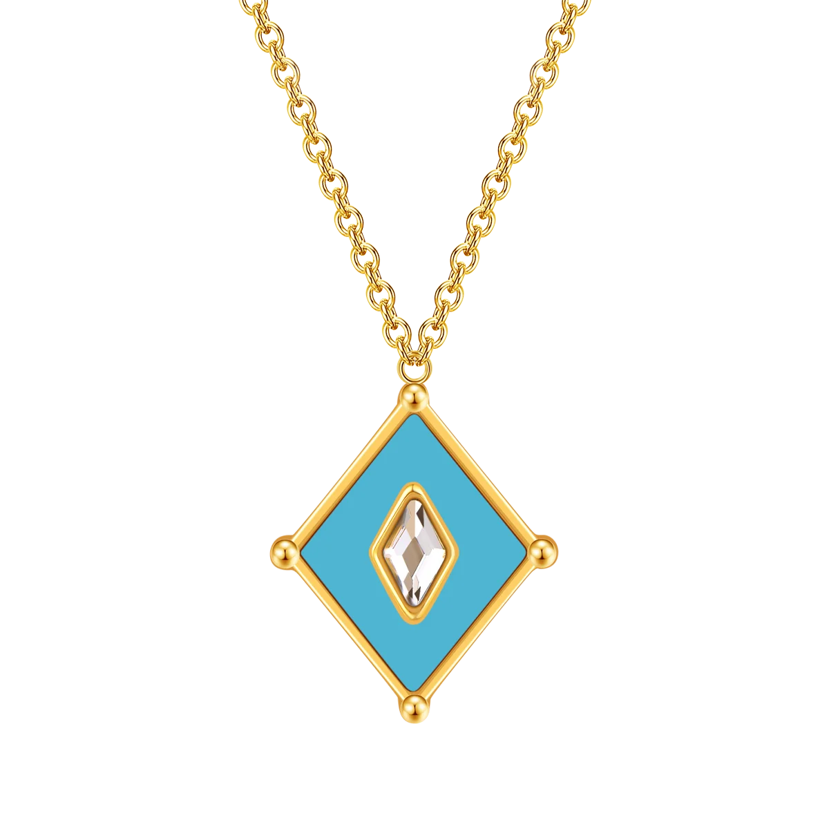 Inspired by the shape of a kite, studded with a stunning crystal in the center.