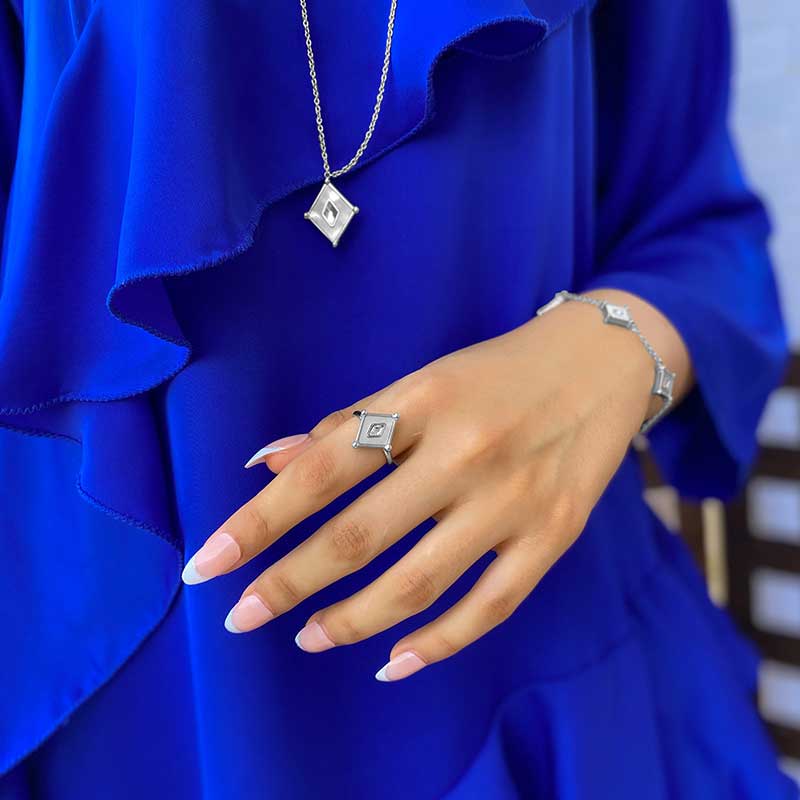 The Kite Collection is inspired by the beautiful shape of the kite. It is designed to encourage you to express yourself and chase your dreams until they become true. It features geometric shapes and edges, studded with a stunning crystal. This unique piece will elevate everything you style it with.