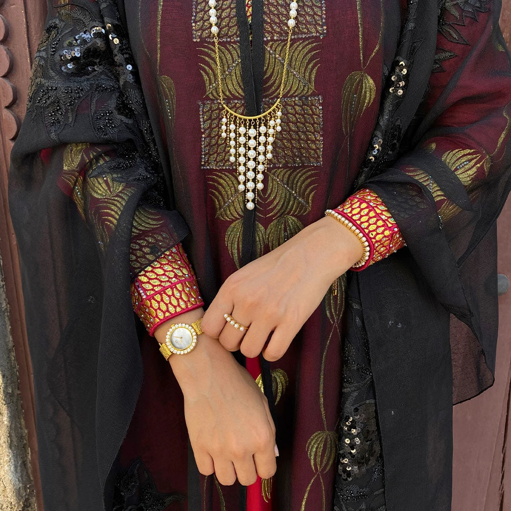The Symphony Collection is a graceful jewellery set designed for special occasions, combining hanging pearls and delicate sparkles to elevate your festive elegance with effortless charm.